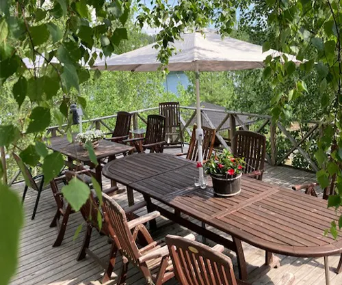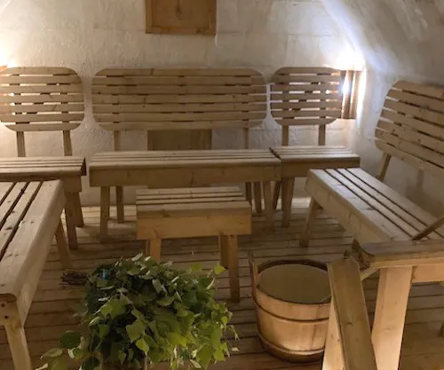 Vuokrattavissa kolme upeaa saunaa: savusauna, rantasauna ja holvisauna.